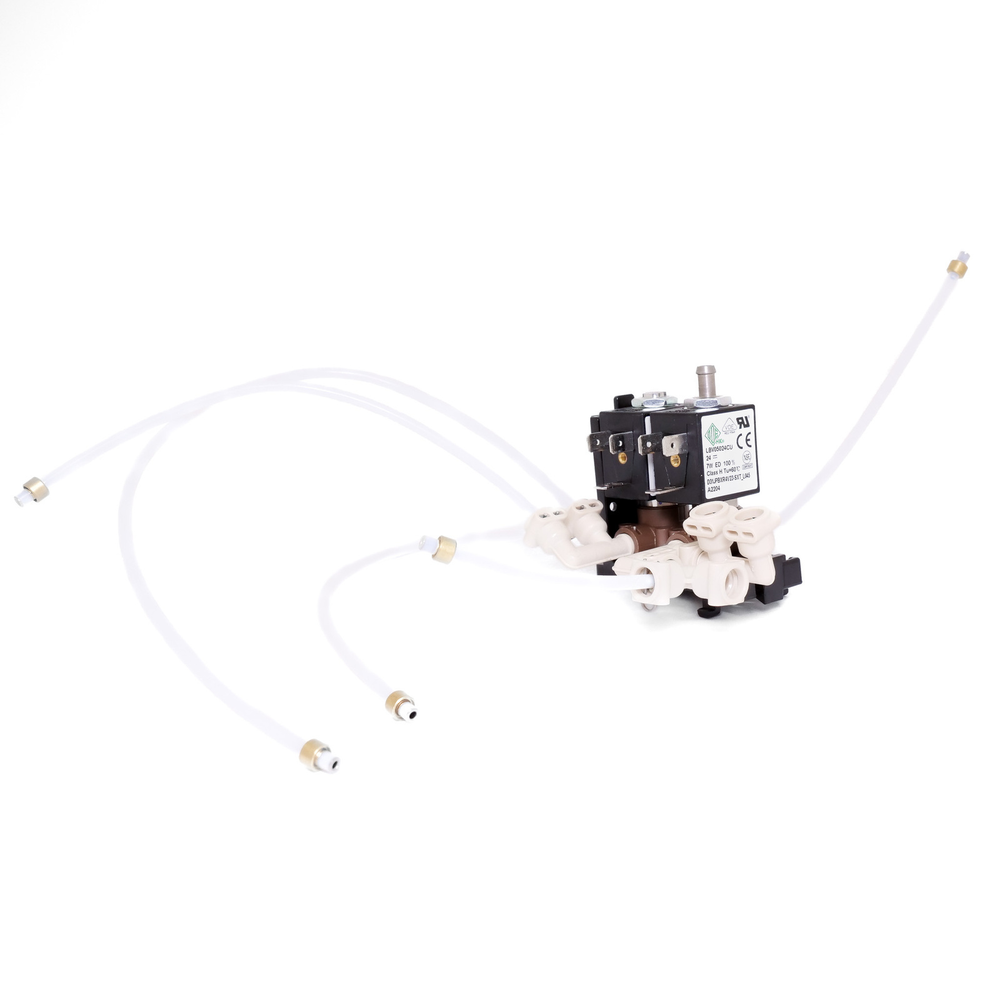 Zespół elektrozaworu to element sterujący przepływem wody lub pary w układzie hydraulicznym ekspresu. Dokładne miejsce montażu i funkcję należy zweryfikować na podstawie numeru części oraz schematu technicznego konkretnego modelu urządzenia.