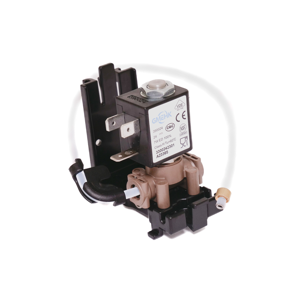 Zespół elektrozaworu do gorącej wody identyfikowany kodem 9N0100083 (alternatywny numer katalogowy: 7NN0255) to część zamienna stosowana w profesjonalnych ekspresach do kawy.