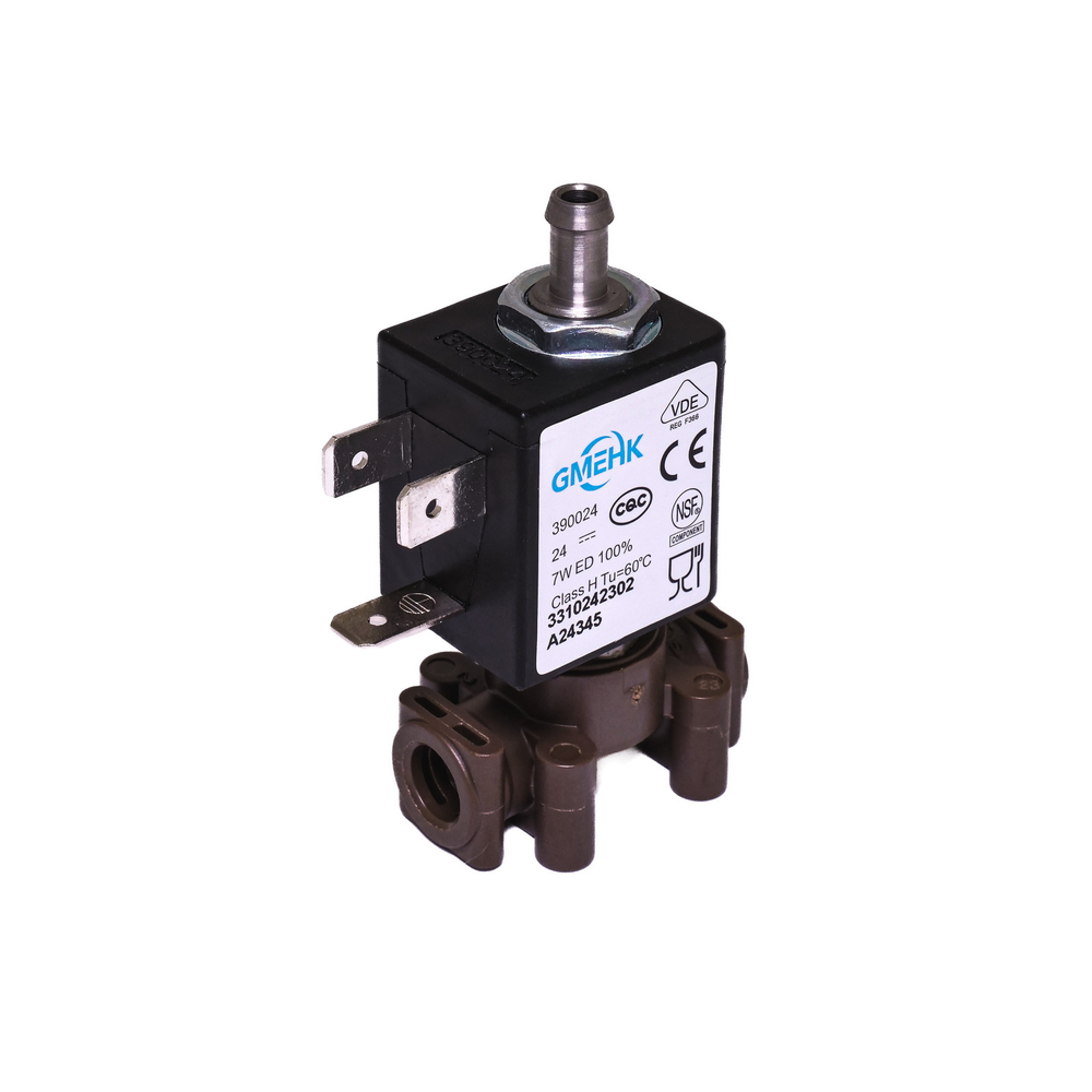 Zawór elektromagnetyczny 3-drogowy 24VDC oznaczony kodem 9D0300015 oraz zastępczym numerem katalogowym 8D30034 to zawodowa część zamienna przeznaczona do automatycznych ekspresów do kawy.
