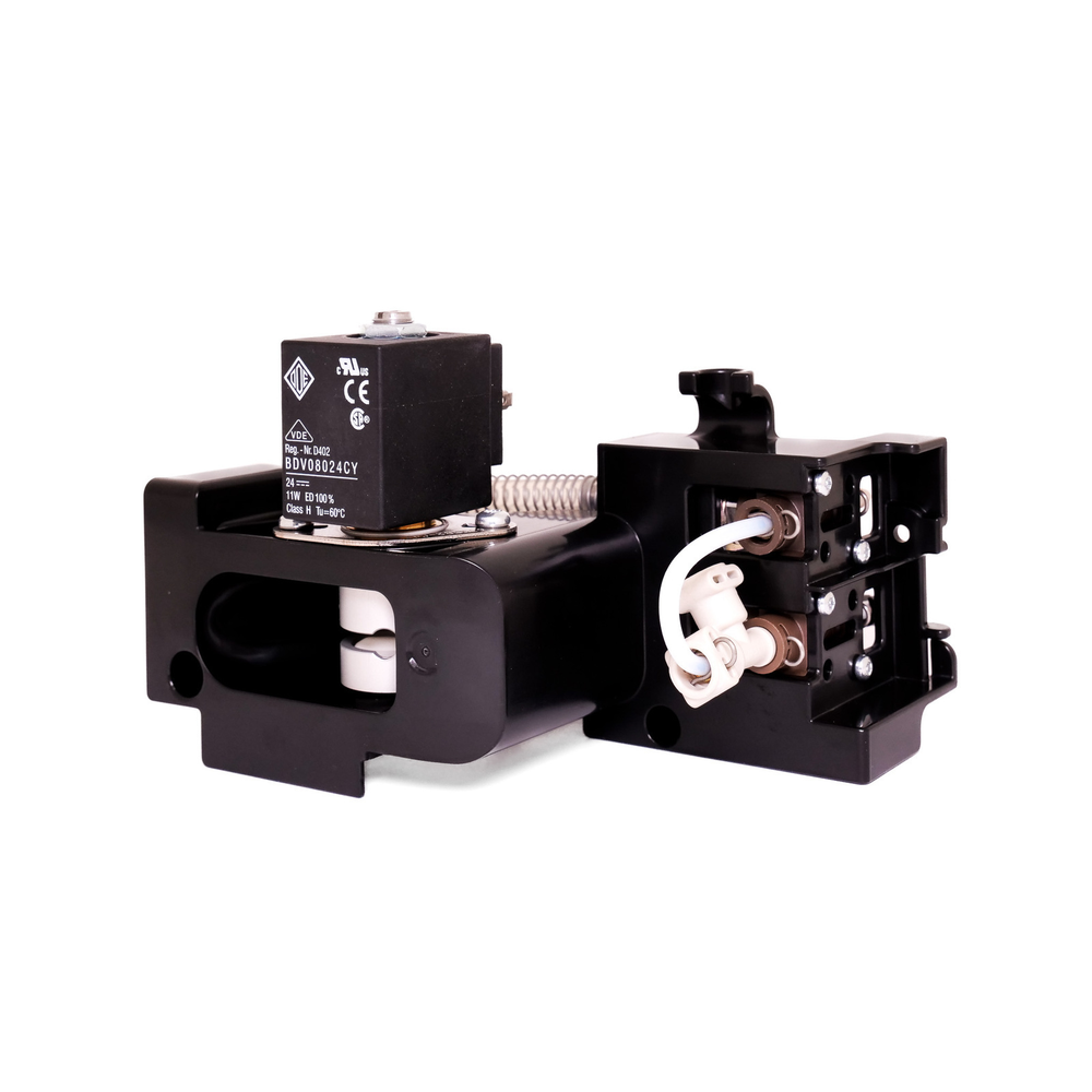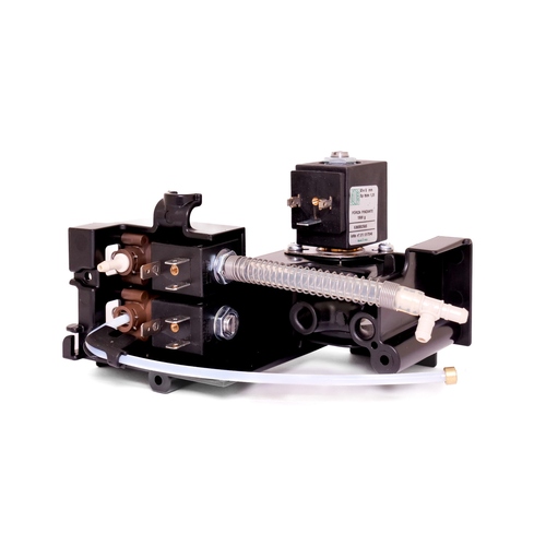 Zespół zaworu zaciskowego oznaczony kodem 9N0100072 to element hydrauliczny stosowany w zawodowych ekspresach do kawy. Zawór zaciskowy kontroluje przepływ cieczy poprzez mechaniczne zaciskanie elastycznego przewodu.