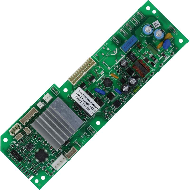 Płyta elektroniki mocy DeLonghi (DGT SW1.0) 230V do ekspresów serii ESAM 5400 EX:1. Moduł steruje kluczowymi komponentami urządzenia: grzałką, pompą, elektrozaworami i młynkiem. Oryginalna część zamienną DeLonghi o numerze 5213212151. W zestawie: 1x płyta elektroniki jak na zdjęciu.