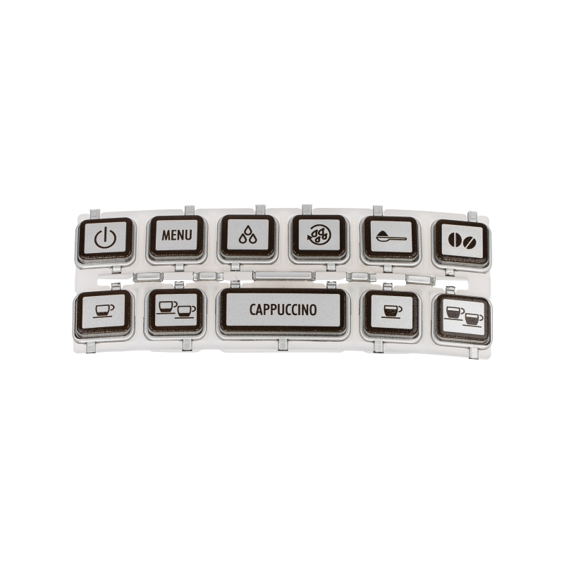 Panel przycisków symbolowych do ekspresów DeLonghi serii ECAM 22. Część zamontowana na przedniej elektronice urządzenia, odpowiadająca za obsługę funkcji parzenia i parowania. Oryginalna część zamienną DeLonghi, kompatybilna z modelami ECAM 22.360.B, ECAM 22.360.S, ECAM 22.366.B i ECAM 22.366.S. Zawartość: 1x panel przycisków jak na zdjęciu.