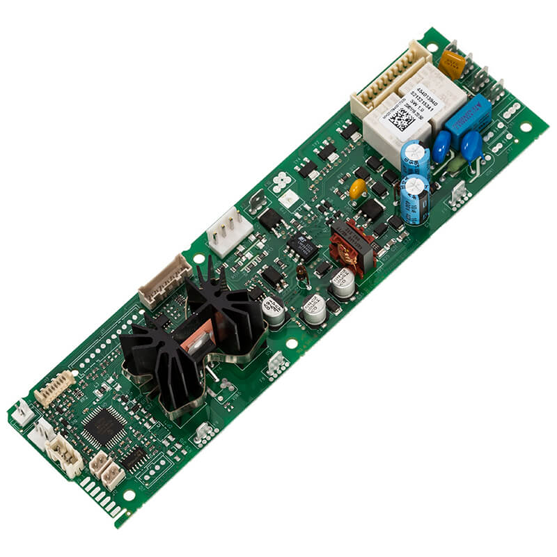 Moduł elektroniki zasilającej do ekspresów DeLonghi ESAM 6700 EX:3 PrimaDonna Avant i ESAM 6720. Płytka drukowana zawiera biały nalepkę z numerem kodowym DeLonghi rozpoczynającym się od 52. Numer musi odpowiadać kodowi 5213215341. Część oryginalna, gotowa do instalacji.