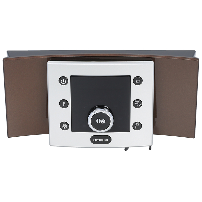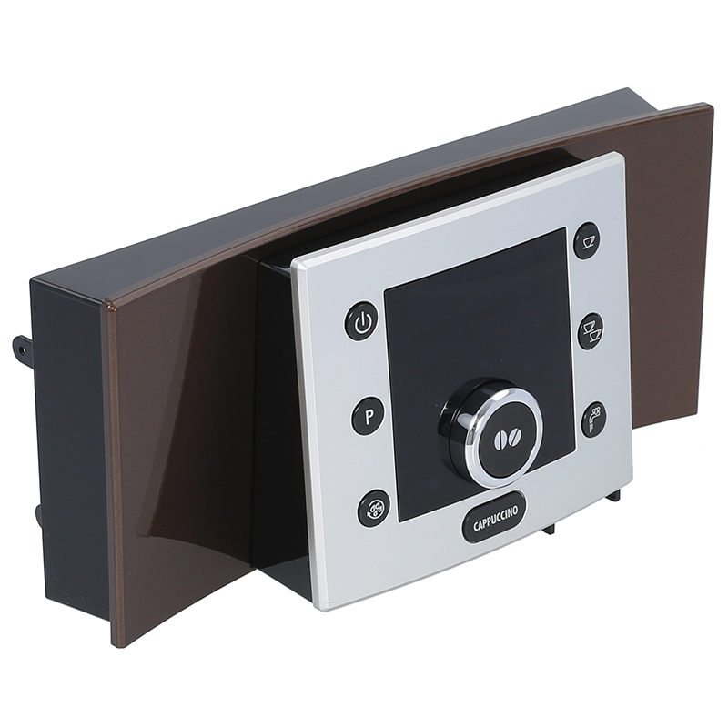 Kompletna jednostka sterowania do ekspresów DeLonghi ESAM 5550 w kolorze brązu. Zawiera panel operacyjny z wyświetlaczem LCD, przyciskami sterującymi i elektronikę kontrolną. Część zamienia się w całości wraz z kablem zasilającym. Oryginalna zamiennik do modeli ESAM 5550.B i ESAM 5550.BW Perfecta Cappuccino.