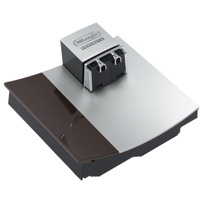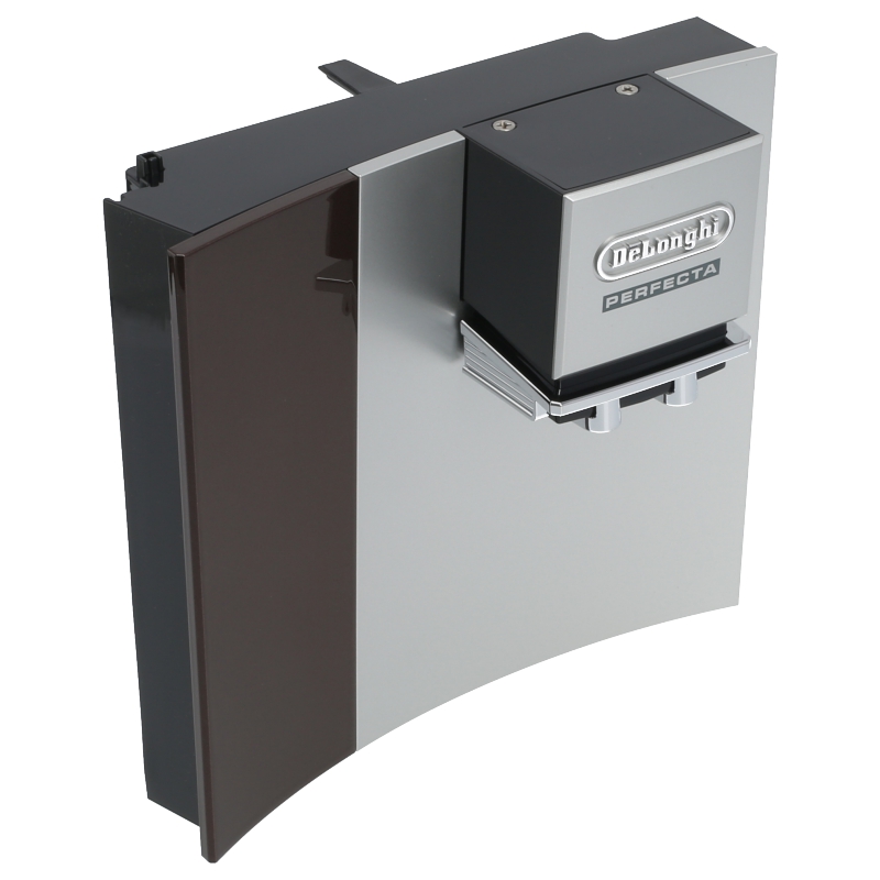 Drzwiczki do ekspresu DeLonghi ESAM 5400.BW EX.1 w kolorystyce brąz-srebro. Część wyposażona jest w regulowany na wysokości wylewak do kawy, umożliwiający dostosowanie pozycji filiżanki. Oryginalna część zamienną dedykowana do modelu Perfecta.