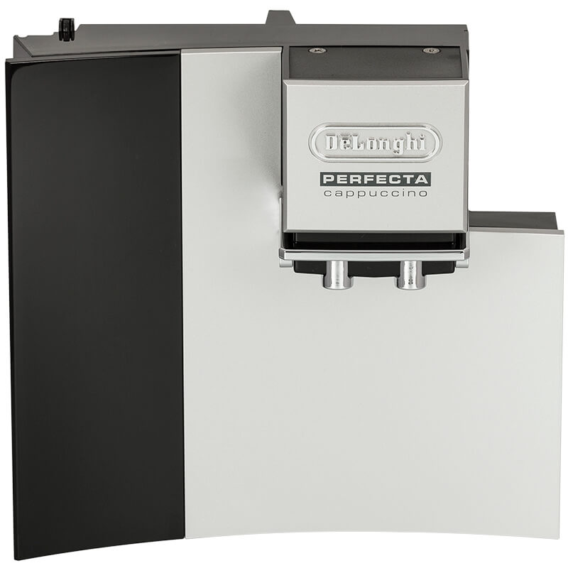 Drzwiczki do ekspresu DeLonghi ESAM 5500.B i ESAM 5550.B Perfecta Cappuccino. Kompletny zestaw zawiera drzwi w kolorze czarno-srebrnym z regulowaną wysokością wylewu kawy. Część oryginalna zapewnia dokładne dopasowanie i niezawodną pracę urządzenia.