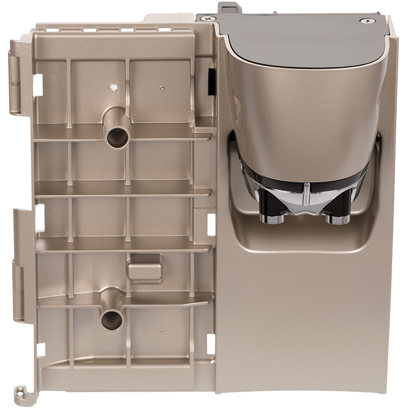 Przednia drzwiczka do ekspresu DeLonghi EAM 4300 Magnifica i ESAM 4300 Magnifica w eleganckim kolorze złotym (szampańskim). Drzwiczka jest w pełni zmontowana i wyposażona w regulowany dystrybutor kawy. Część oryginalna, gotowa do instalacji. Uwaga: blenda nie jest w zestawie.