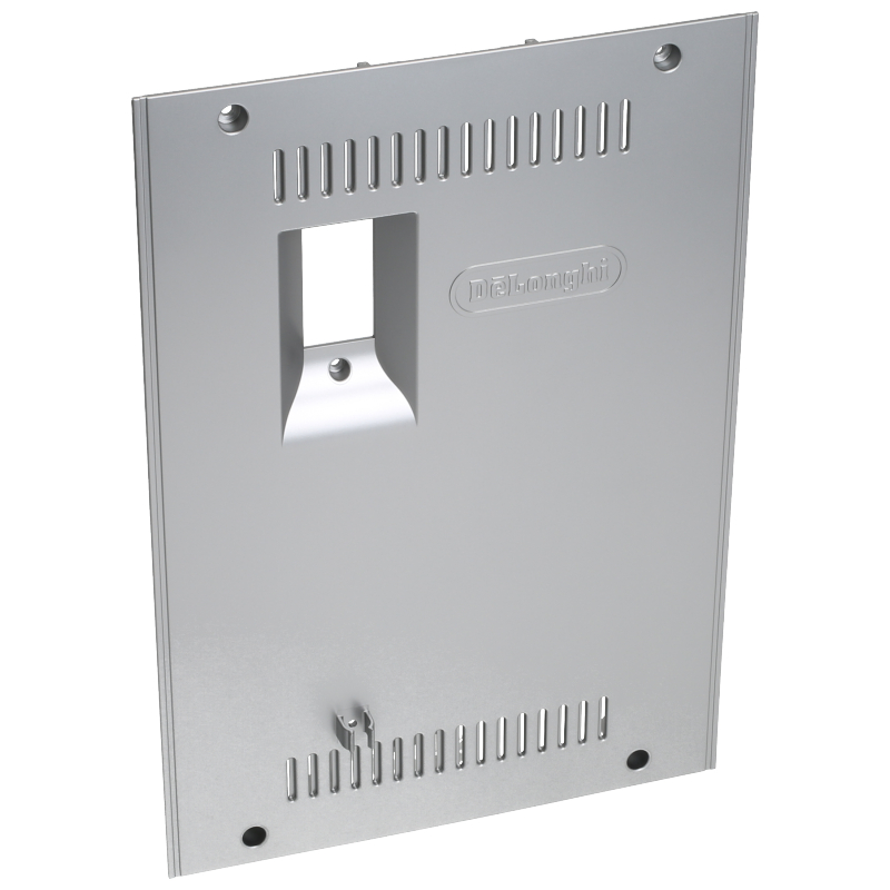 Ściana tylna do ekspresu DeLonghi PrimaDonna Class w kolorze srebrnym. Element wykonany z wentylacyjnymi szczelinami i wycięciem dla przycisku zasilania. Oryginalna część zamienną do automatycznych ekspresów do kawy DeLonghi. Zapewnia prawidłową wentylację urządzenia i estetyczny wygląd obudowy.