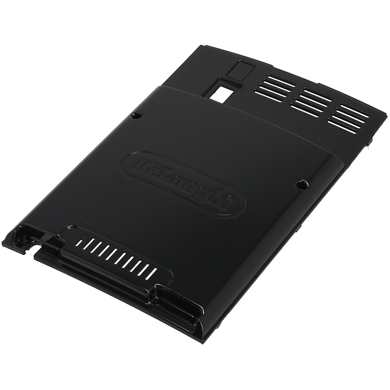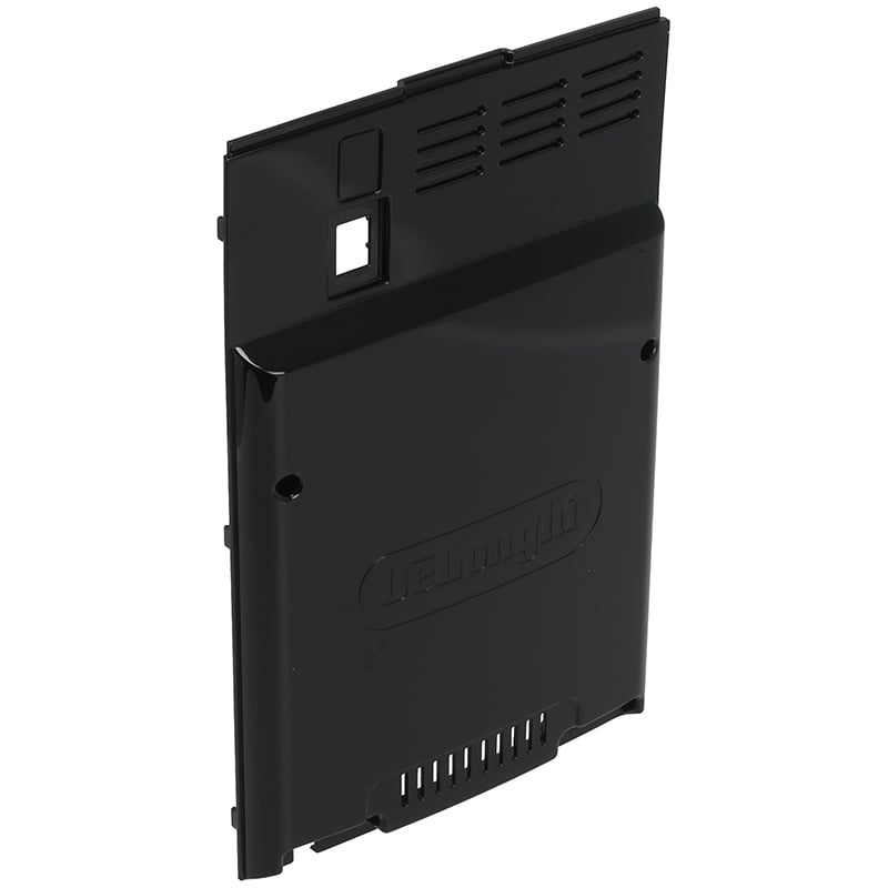 Ściana tylna do ekspresów DeLonghi serii ECAM wykonana z czarnego tworzywa o połyskliwym wykończeniu. Posiada wentylacyjne szczeliny oraz otwór dostępowy dla przełącznika sieciowego. Część oryginalna, kompatybilna z modelami Magnifica i innymi automatami z serii ECAM. Wymiana zalecana w przypadku uszkodzenia obudowy lub problemów z wentylacją urządzenia.