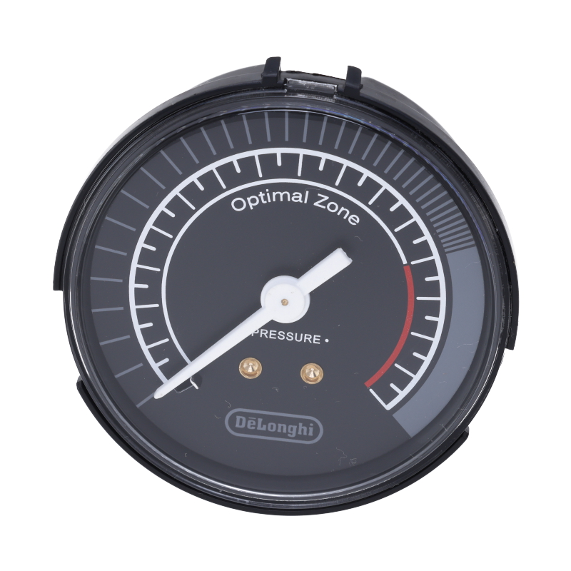 Manometr ciśnienia pompy do ekspresów DeLonghi serii La Specialista. Urządzenie wyposażone w zintegrowaną tarczę skali umożliwia precyzyjny pomiar ciśnienia roboczego. Kompatybilne z modelami EC 9255.M, EC 9555.BM, EC 9865.M i EC 9885.M. W zestawie: 1x manometr ciśnienia.