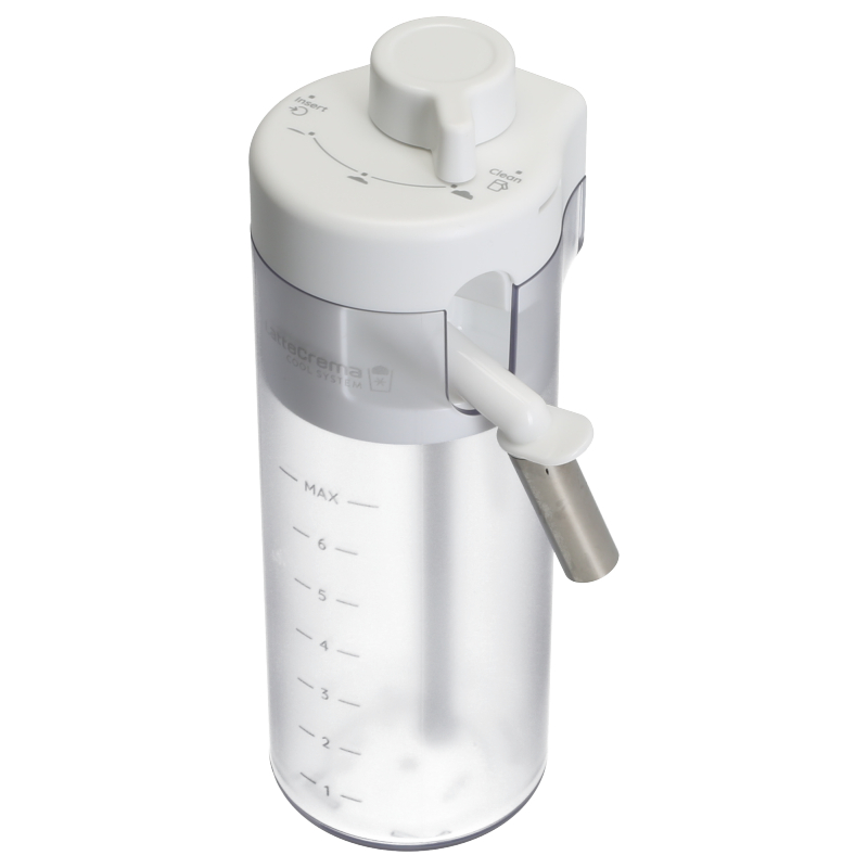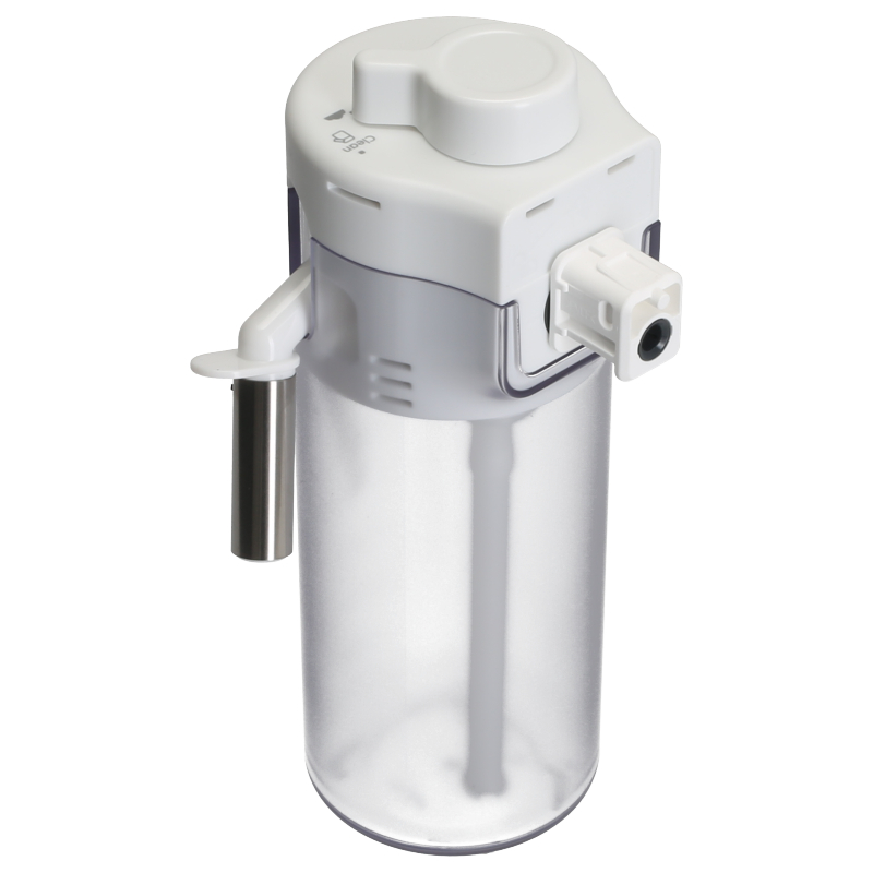 Kompletny zbiornik mleka do ekspresu DeLonghi Eletta Explore w kolorze białym. Zestaw zawiera pojemnik, pokrywę, rurkę ssącą i dyszę dozowania. Część oryginalna DeLonghi, kompatybilna z modelami serii ECAM 450 i ECAM 452. Zapewnia precyzyjne dozowanie mleka do napojów mlecznych.