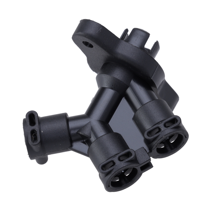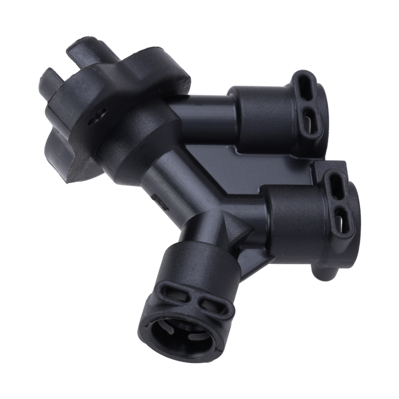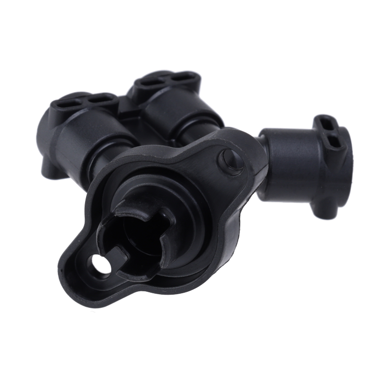 Trójdrożny złącznik z czarnego tworzywa sztucznego do przewodów ciśnieniowych ekspresu DeLonghi Dedica Duo EC 890. Element łączy trzy przewody w jednym punkcie, zapewniając niezawodne połączenia w systemie hydraulicznym urządzenia. Zalecamy jednoczesne zamówienie uszczelek do przewodów, które ułatwią montaż i zapewnią szczelność połączeń.