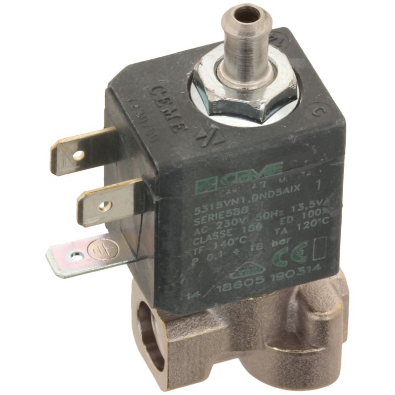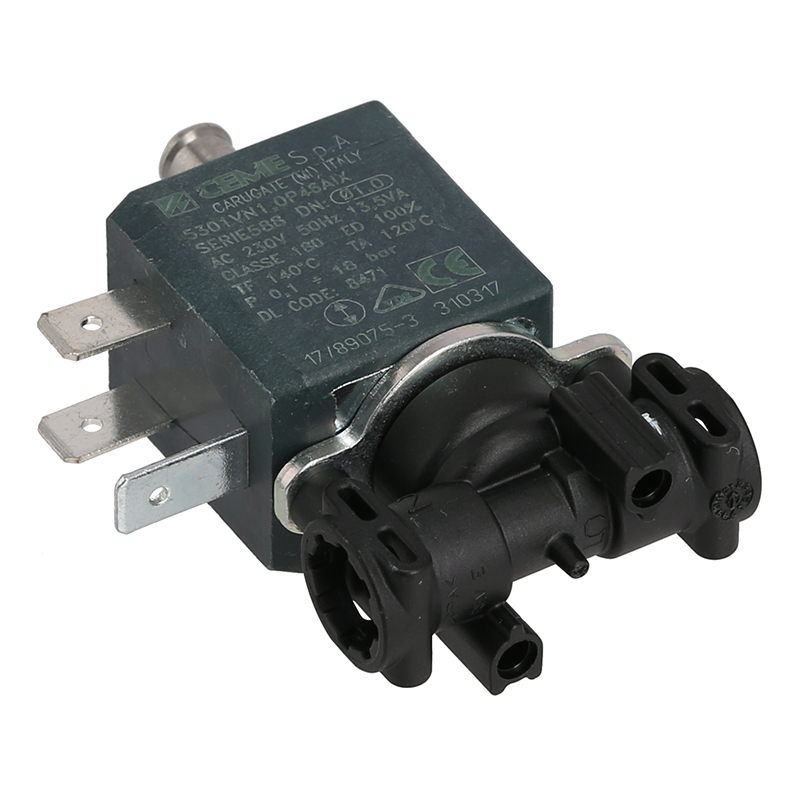 Zawór solenoidowy trzywyjściowy do ekspresów DeLonghi EAM i ESAM. Nowa wersja z obudową z tworzywa sztucznego (kod 5213218471). Zawór steruje przepływem wody w systemie parzenia. Wymaga dodatkowych części montażowych: złączki (5313218341), uszczelki (63444D) i uchwytu (6132101300) – zamawiaj osobno. Montaż wymaga wiercenia otworu 4 mm w uchwycie. Konieczne jest dodatkowe uziemienie (15032). Kompatybilny z modelami: EABI 66.00, EAM 3500, ECA 13400, ECAM 350.35, ESAM 04.350, ESAM 420.40, ESAM 428.40, ESAM 460.80 i innymi.