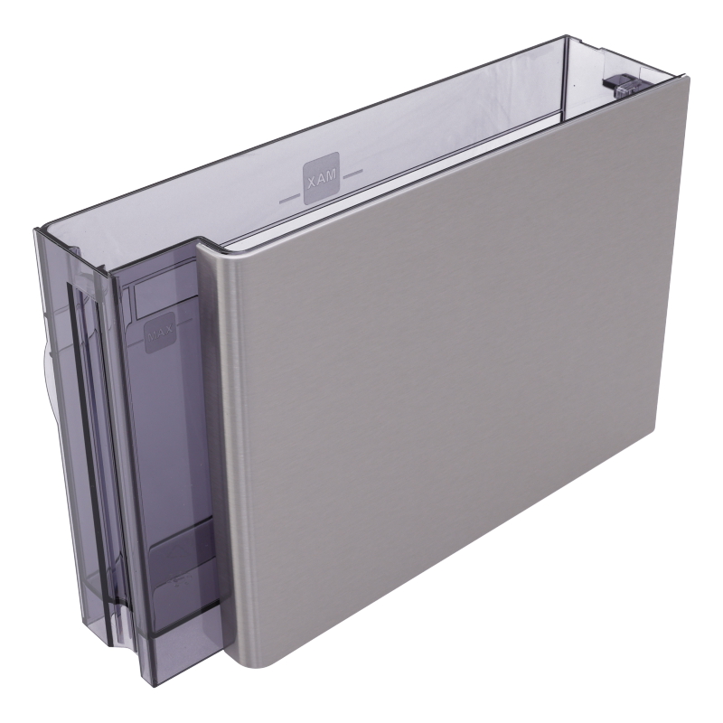 Zbiornik wody zamienny do ekspresu DeLonghi Maestosa EPAM 960.55.GM z wbudowanym zaworem odpływowym. Obudowa wykonana w metalicznym wykończeniu z boczną osłoną. Część oryginalna, gotowa do montażu. Zawartość opakowania: 1x zbiornik wody.