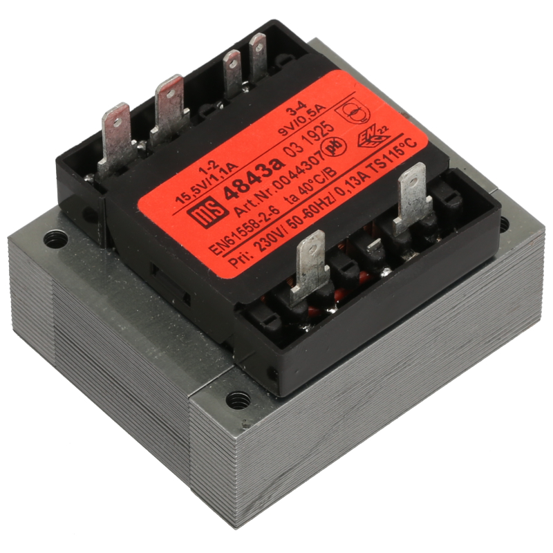 Transformator elektroniczny 230V do ekspresów Jura. Jeśli automat nie włącza się lub wydaje dziwne odgłosy, problem często tkwi w trafo. Urządzenie znajduje się pod grzejnikami i może ulec uszkodzeniu przez wyciekającą wodę. Przed wymianą koniecznie uszczelnij ekspres, aby nowy transformator nie uległ szybkiemu zniszczeniu. Specyfikacja: 230V na 9V/500mA i 15,5V/1100mA. W zestawie: 1x transformator.