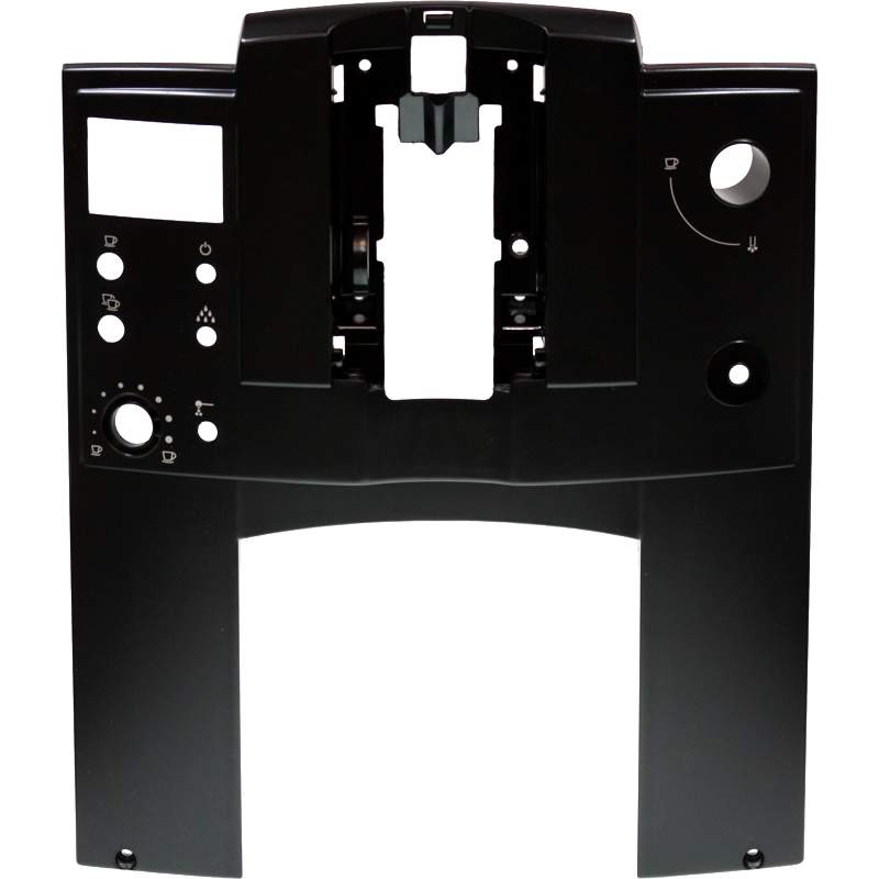 Frontalna obudowa do ekspresu Jura E10 w kolorze czarnym. Element odpowiada za estetykę i funkcjonalność przedniej części urządzenia. Dysza parowa jest utrzymywana za pomocą specjalnej klamerki przymocowanej do frontu poprzez szczelinkę w drzwiczkach. Kompletny zestaw zawiera jedną frontową blaszkę czarną zgodnie z ilustracją.