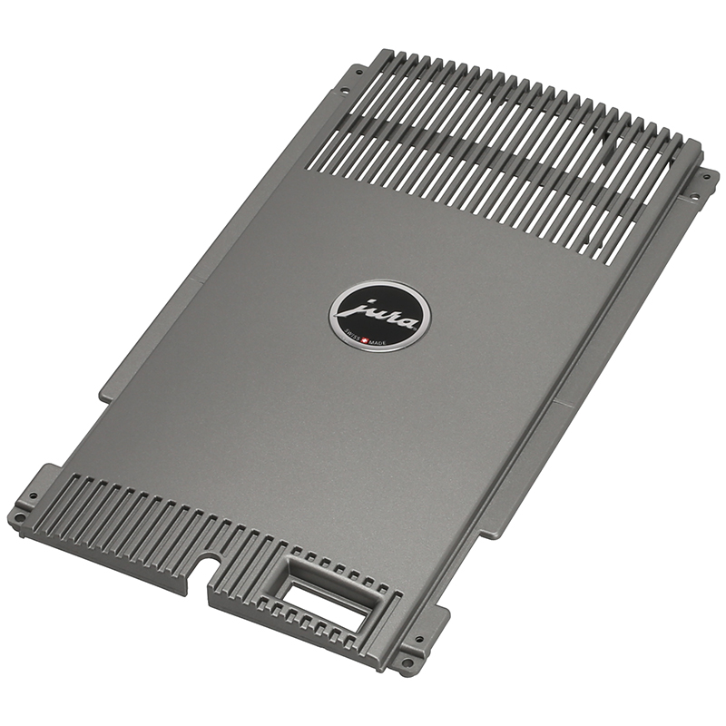 Ściana tylna do ekspresu Jura Impressa F5 wykonana w kolorze titan. Element wyposażony w przycisk, otwory wentylacyjne oraz wycięcie dla głównego wyłącznika zasilania. Oryginalna część zamienną zapewniająca prawidłową funkcjonalność urządzenia.