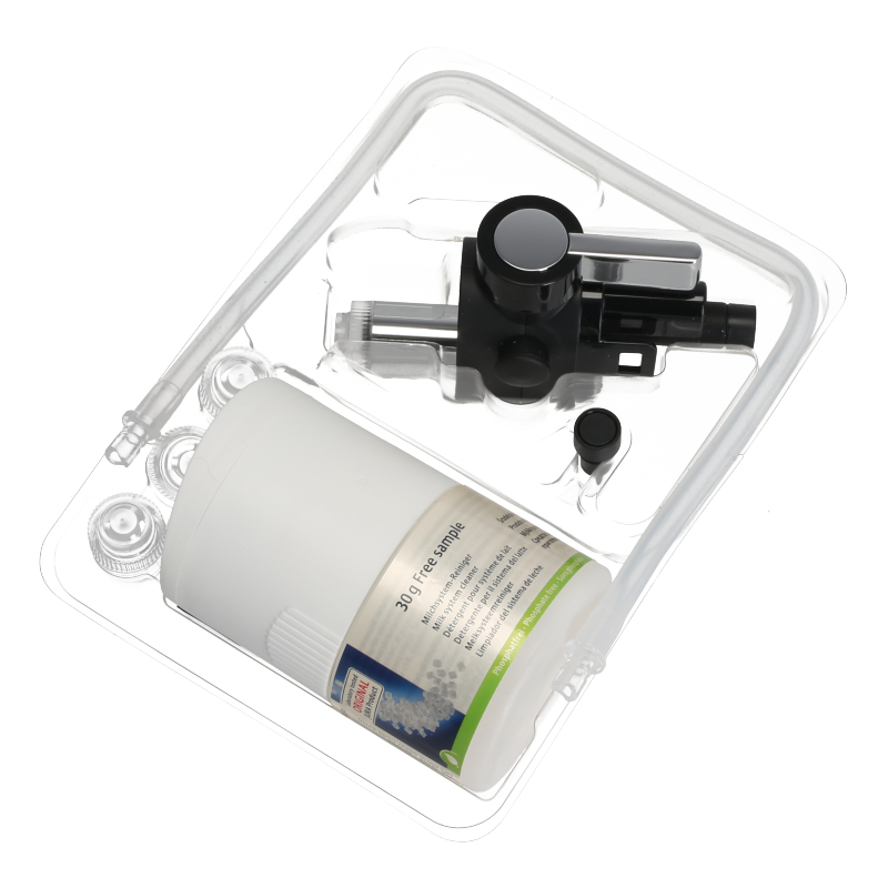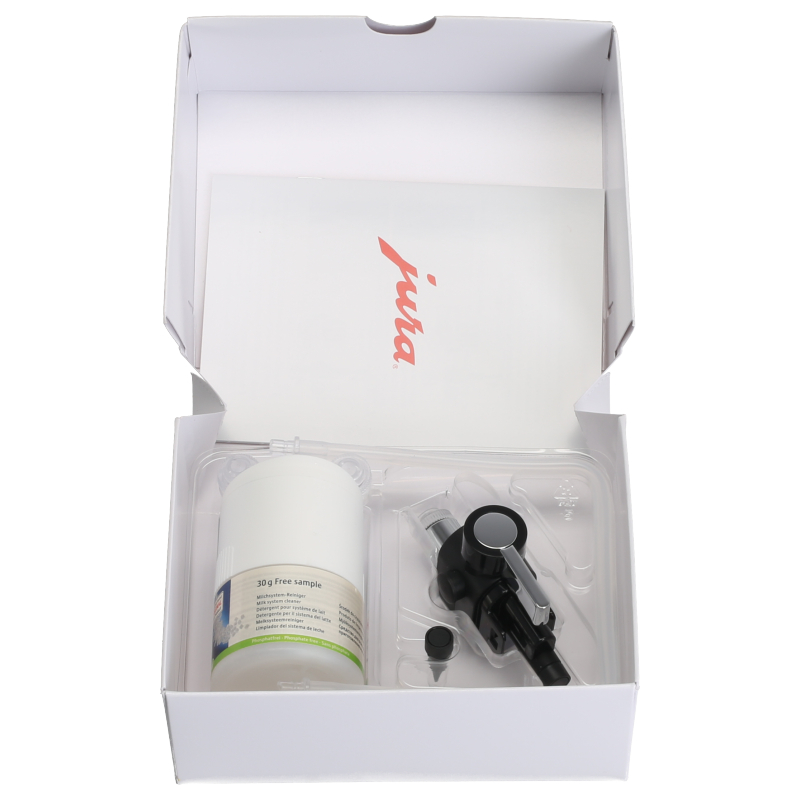 Dysza parowa Profi Feinschaumdüse G2 EA drugiej generacji do ekspresów Jura. Wykonana z wysokiej jakości materiałów, zapewnia idealne pieniście mleka. W pozycji pionowej tworzy delikatną, trwałą piankę mleczną, w poziomej – podgrzewa mleko do specjalnych kaw. Zestaw zawiera dysze, silikonowy wąż z złączkami, adapter powietrza i czyszczak systemu mlecznego.