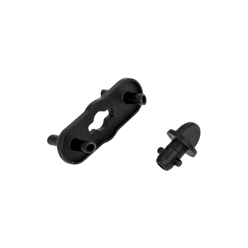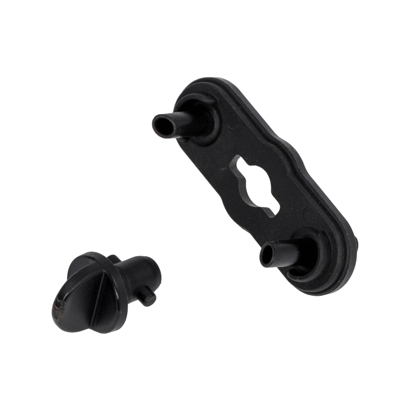 Złącze mleka do ekspresu Jura Impressa X9. Dwuczęściowy connector wykonany z czarnego tworzywa sztucznego, umożliwiający podłączenie zbiornika mleka do systemu spieniacza. Element zapewnia niezawodne połączenie między zbiornikiem a dysza parową, gwarantując prawidłowe funkcjonowanie automatycznego spieniania mleka.