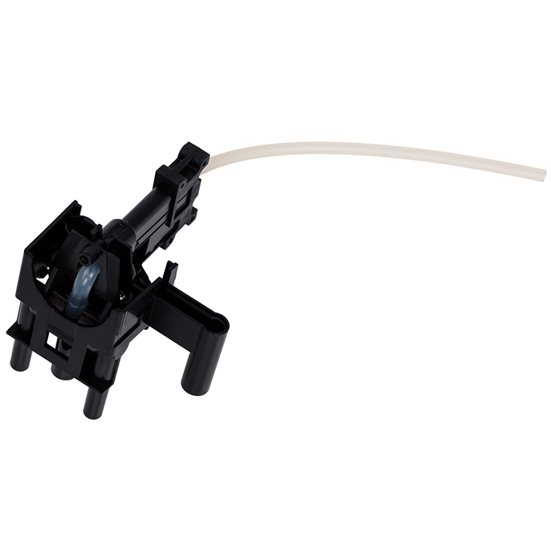 Nośnik systemu płynów do dyszy kawy marki Jura. Element montowany z przodu urządzenia w regulowanej wysokościowo dyszy kawy. Kompletny zestaw zawiera nośnik oraz wąż silikonowy. Część zamiennego systemu dystrybucji kawy, zapewniająca precyzyjne dozowanie napoju.