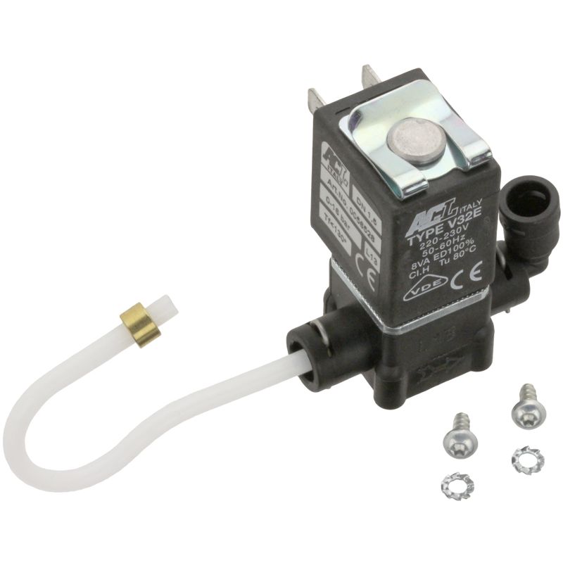 Zawór elektromagnetyczny 230V do ekspresów Jura serii C i F. Urządzenie kontroluje przepływ pary i wody w systemie. Jeśli podczas parzenia kawy wycieka woda z dyszy parowej lub brakuje pary podczas jej poboru, zawór może być przyczyną problemu. Umieszczony z boku urządzenia pod termoblokiem. Zestaw zawiera zawór magnetyczny z przewodem. Nowa wersja z dołączonym wężem.