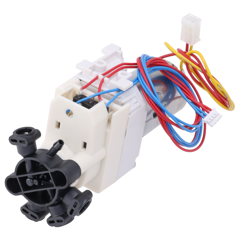 Elektromagnetyczny zawór wielodrożny 12-24V, całkowicie zmontowany z przewodem podłączonym do mikroprzełączników i silnika. Zawór posiada pięć przyłączy do węży i jest kompatybilny z ekspresem Jura J10 EA (15562). Oryginalna część zamienną zapewniająca niezawodne działanie systemu dystrybucji wody w urządzeniu.