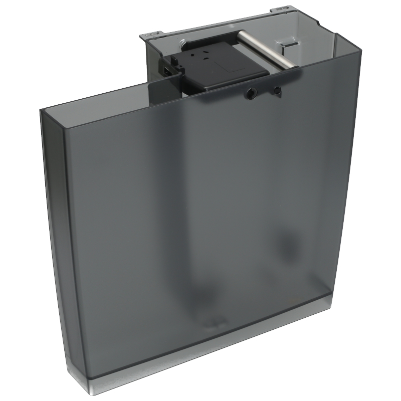 Zbiornik wody do ekspresów Jura Giga X3 i X8 w komplecie z uchwytem transportowym, zaworem odpływowym i pływakiem magnetycznym do wskaźnika poziomu wody. Część zamiennika oryginalnej jakości, gotowa do montażu. Zapewnia niezawodne zasilanie wodą automatycznych ekspresów do kawy.