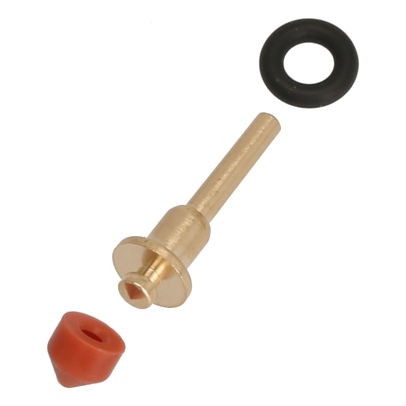Zestaw naprawczy do zaworu wylotowego Jura zawierający mosiężny stößel, czarny o-ring i czerwoną uszczelkę kształtową. Rozwiązuje problem pęknięcia plastikowego stößela w oryginalnych częściach. Umożliwia trwałą naprawę zaworu bez konieczności wymiany całego zespołu. Uszczelki dostępne są również osobno (art. 15012) do przyszłych serwisów. Zestaw zawiera: stößel mosiężny z o-ringiem i uszczelką kształtową.