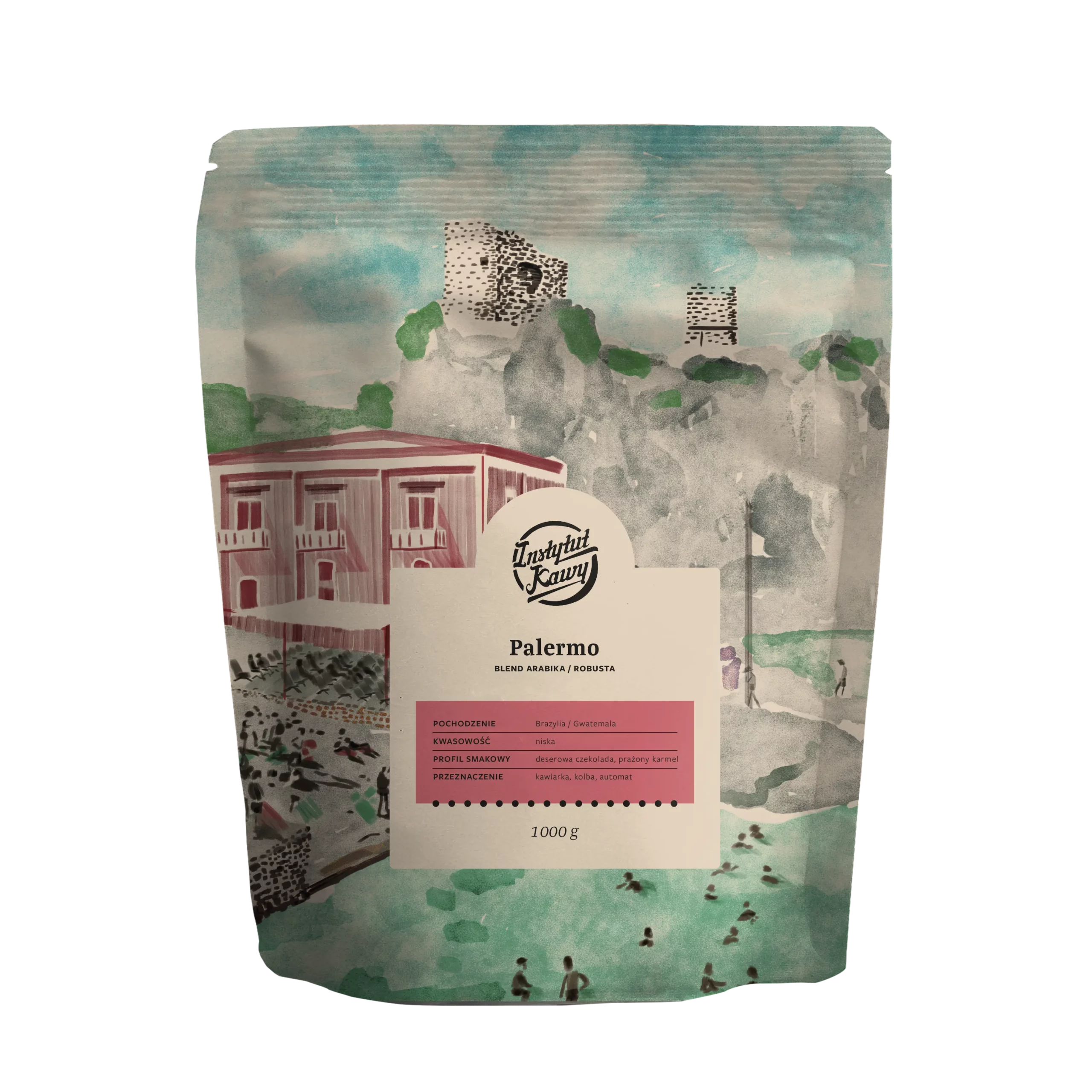 Kawa PALERMO to starannie skomponowana mieszanka 70% Arabiki z Brazylii i 30% Robusty z Gwatemali. Łączy w sobie łagodność i bogactwo aromatu Arabiki z wyrazistością i intensywnością Robusty. To kawa o pełnym body, mocnym charakterze i gęstej, kremowej cremie.